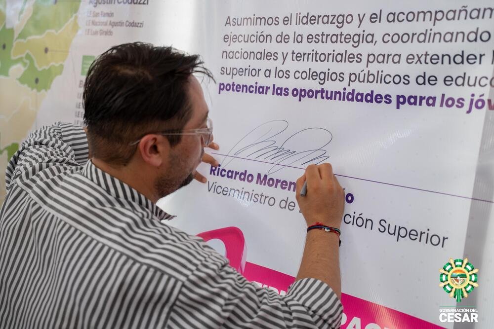 El evento tuvo lugar en la Institución Educativa Manuel Rodríguez Torices, en el municipio de San Diego, donde fueron convocados estudiantes, docentes, alcaldes y directivos de instituciones de educación superior aliadas a la iniciativa. Durante la jornada se firmó el Pacto por la Educación Superior del Cesar, documento que formaliza el compromiso del Gobierno Nacional y el Departamental para implementar la estrategia y garantizar su expansión en el territorio.